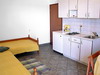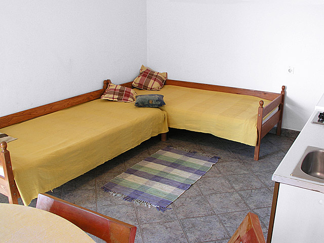A sleeping room has a double bed (160x200) with bedding and coverlets, two night-tables, mirror and a wardrobe. In a living room there are another 2 separate beds (200x90 and 190x90).