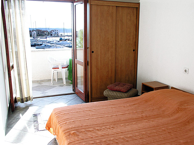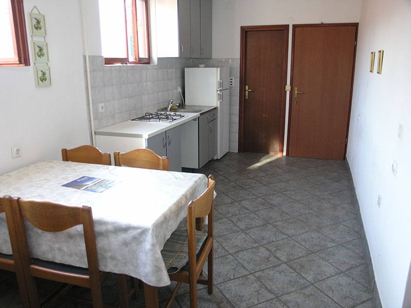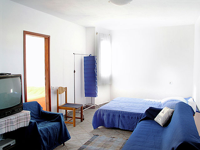A kitchen place is on one side, prolonged in a dinning room equipped with table and 6 chairs and continuing in a living room equipped with a couch, double bed (160x200) and TV with Croatian programms and free satellite channels Astra and Hotbird.