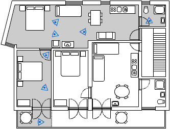You can exit to the balcony with a nice view of the sea (1.5x3.6) from the sleeping room as well as from the living room.